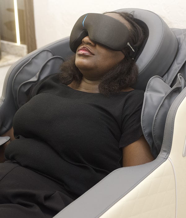 This indulgent session combines gentle ocular heat therapy, soothing vibration massage, and ambient light treatment, all while you recline in a fully automated massage chair.